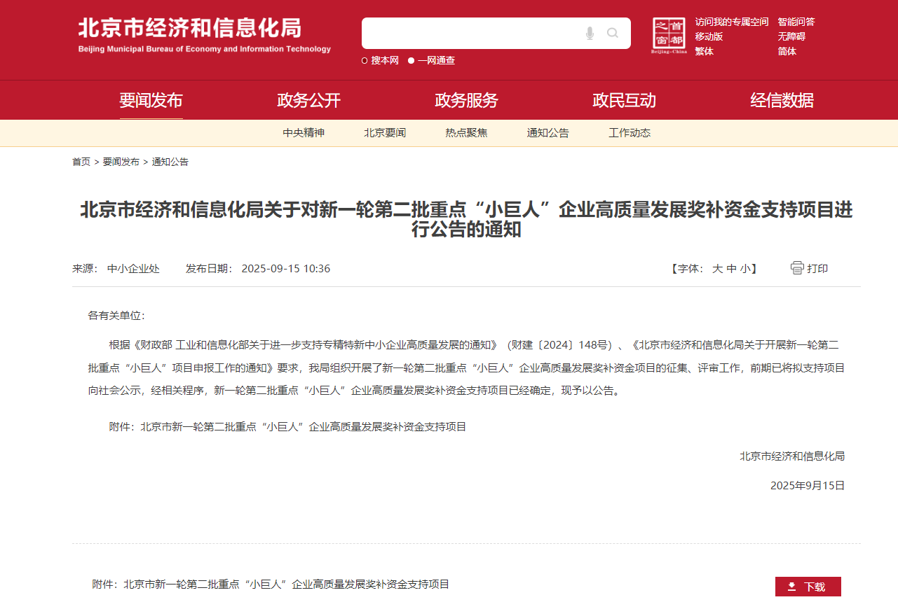国家级重点“小巨人”企业高质量发展奖补资金由财政部、工业和信息化部联合设立,是用于支持专精特新“小巨人”企业高质量发展的奖补资金。